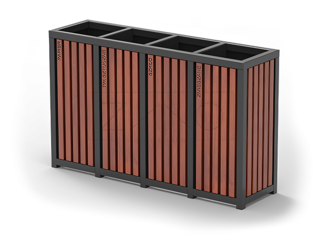 Altus neljasegmendiline ringlussevõtu prügikast sorteeritud jäätmete jaoks. Prügikasti disain põhineb terase ja kvaliteetse puidu esteetilisel kombinatsioonil. Kliendi valikul võib Altus prügikast olla valmistatud konstruktsiooniterasest (värvitud RAL-värviga) või roostevabast terasest ning viimistlus on valmistatud kodumaisest või eksootilisest puidust. Esitatud mudelil on neli lahtrit jäätmete jaoks - igas lahtris on tsingitud lisa. Jäätmete eraldamisel on võimalik kasutada ainult kassetti või kasutada taaskasutusvärvides ühekordseid kotte. Altus on väga funktsionaalne mudel, millel on igale puitliistule freesitud kiri, mis näitab lahtri otstarvet. Tellimust on võimalik isikupärastada, muutes kandeid vastavalt kliendi soovile. Altus ringlussevõtu prügikasti saab kasutada vabalt seisva mudelina, nt kaubanduskäigul, või seda saab kinnitada maa külge. Altus tähistab moodsat ja elegantset väikearhitektuuri, hoolitsedes samal ajal keskkonna eest.